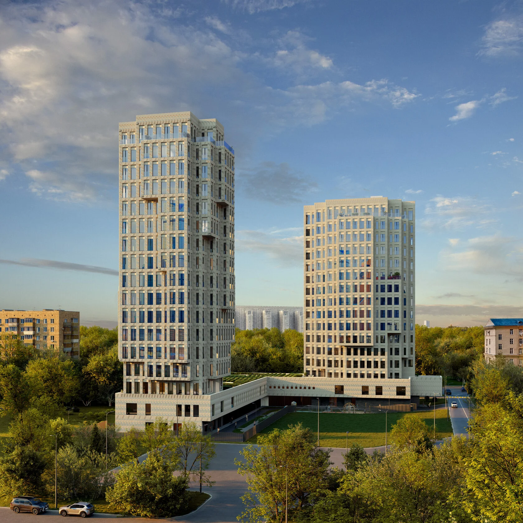 170 метров до парка Красногвардейские пруды, 5 минут от Садового кольца. Видовые квартиры на центр Москвы, высота потолков составляет 3,6–3,8 м, в пентхаусах — 4,2 м и 4,5 м.